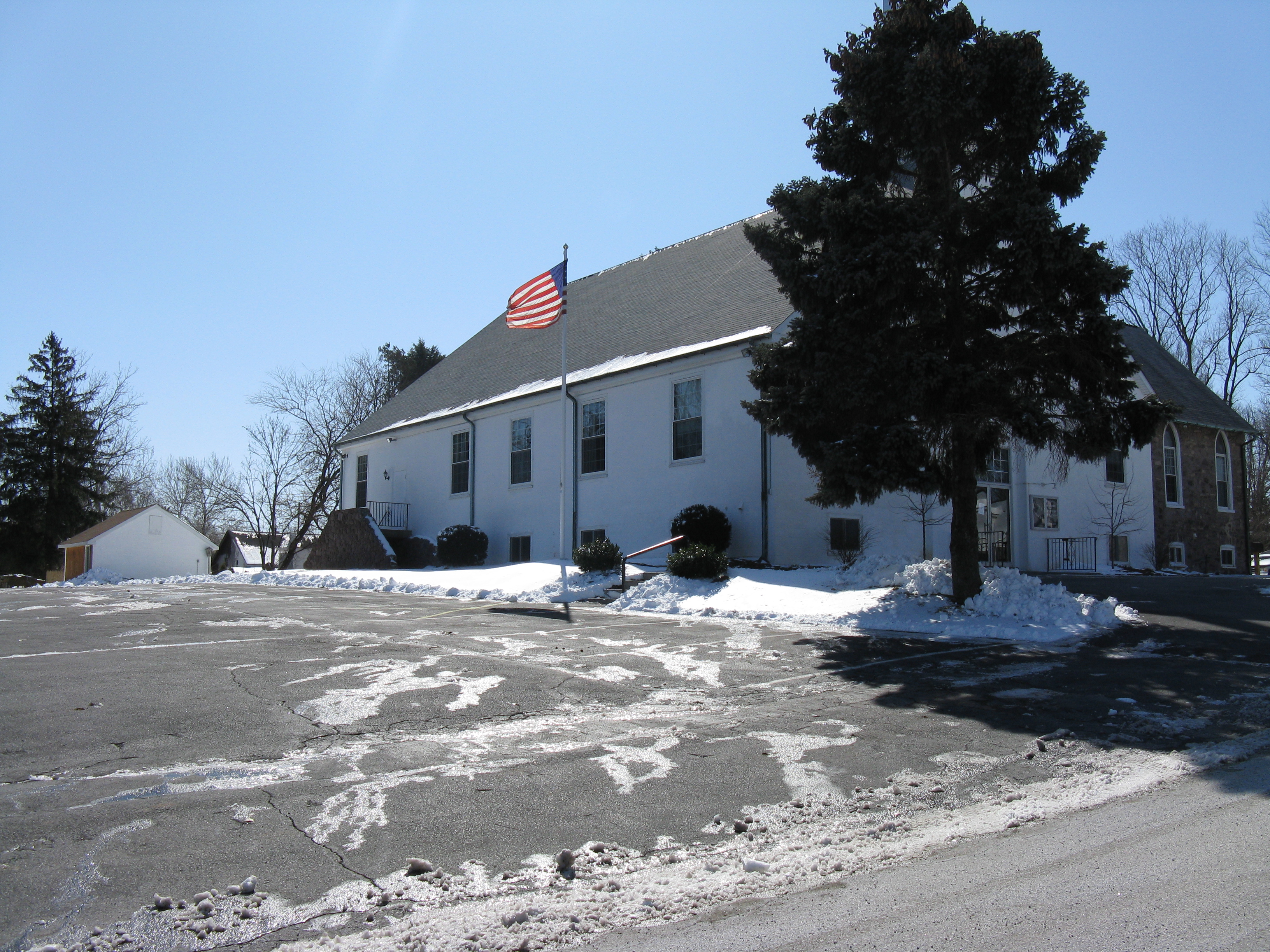 Parking lot, chruch entrance to the right.