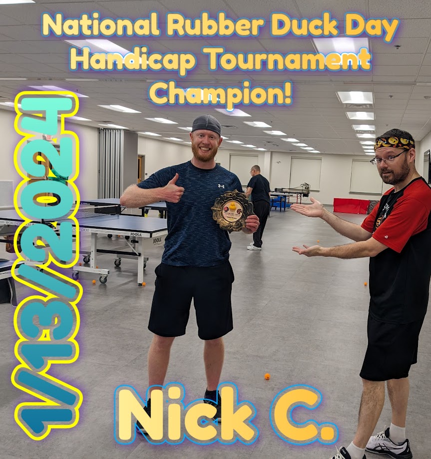 Nick C. won our National Rubber Duck Day Tournament! Yes that's a real day. This was an impromptu event to test out our duck system rules. See, it pays to pay attention to our emails and Facebook to know when I have a surprise event for you!