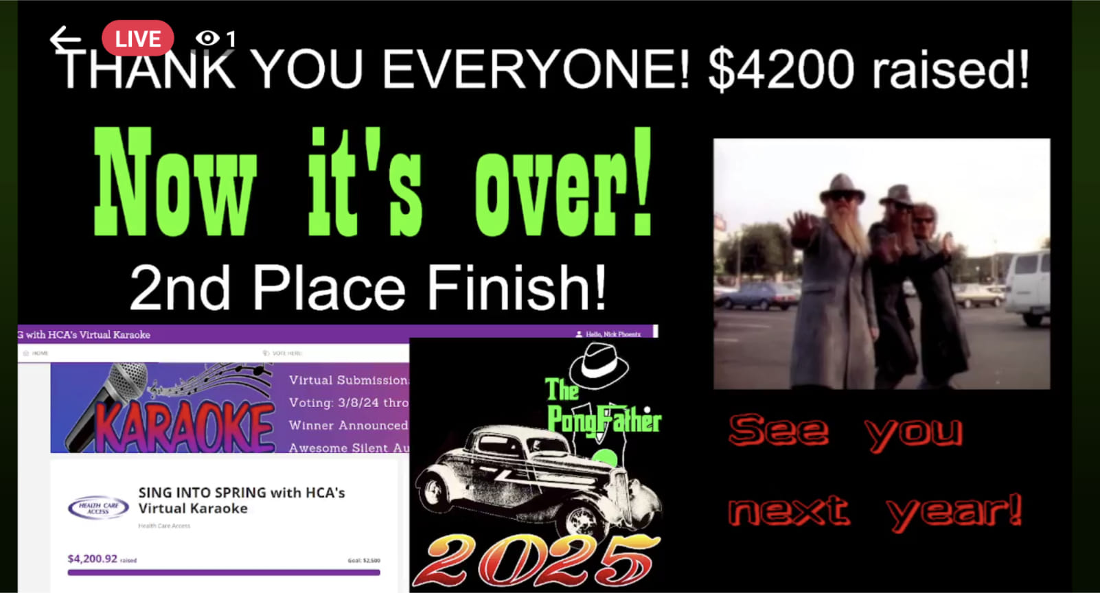 If you missed the PongFather singing in person at the club, you are in luck! Here is the video. This video is an entry for Phoenixvilles's Health Care Access Contest. Vote for our video with dollars. Each dollar is a vote for us! Your money goes to helps provide health care services to those in need in the Phoenixville area. If we win, the prize money will go to the club!