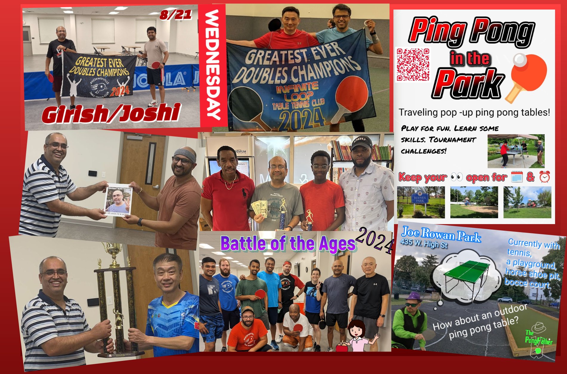 - James defeats Shata to win the King of Prussia District Annual outdoor table tennis tournament.