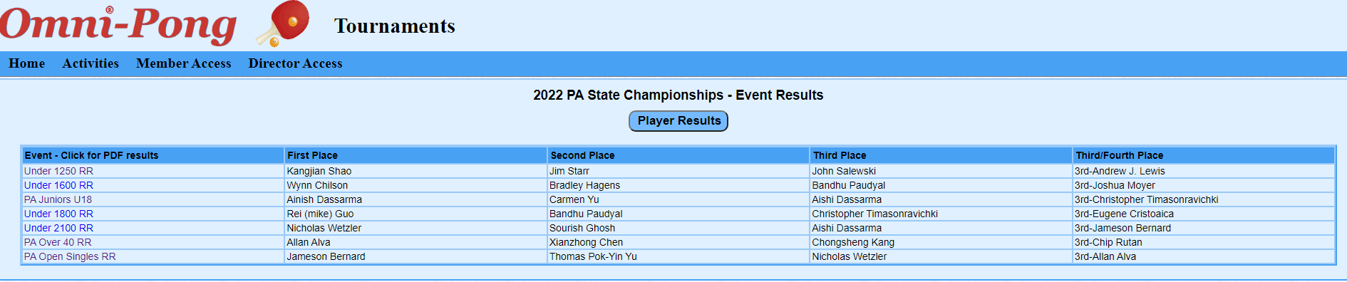 Welcome to the records of the Pennsylvania State Table Tennis Championships and the Ches-Mont Regional Table Tennis Champions.