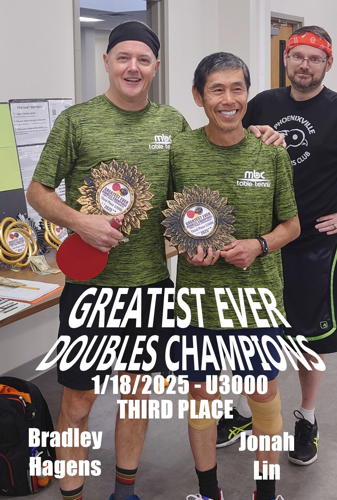 Each Winter the Phoenixville Table Tennis Club holds the Greatest Ever Doubles Champions Tournament.